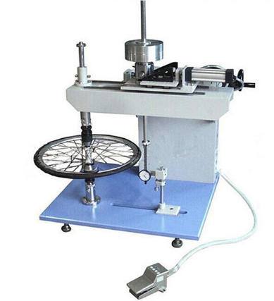 The equipment is designed according to the requirements of ISO4210 and GB3565-83 for the axial load test of the wheel. It is suitable for the axial load test of bicycle wheels of various specifications and models. The basic structure is mechanical clamping of the wheel and convenient for clamping. The cylinder lifting weight is used to automatically control the loading time to achieve the test purpose. The device structure itself considers the accurate positioning and measurement method of the device under test.